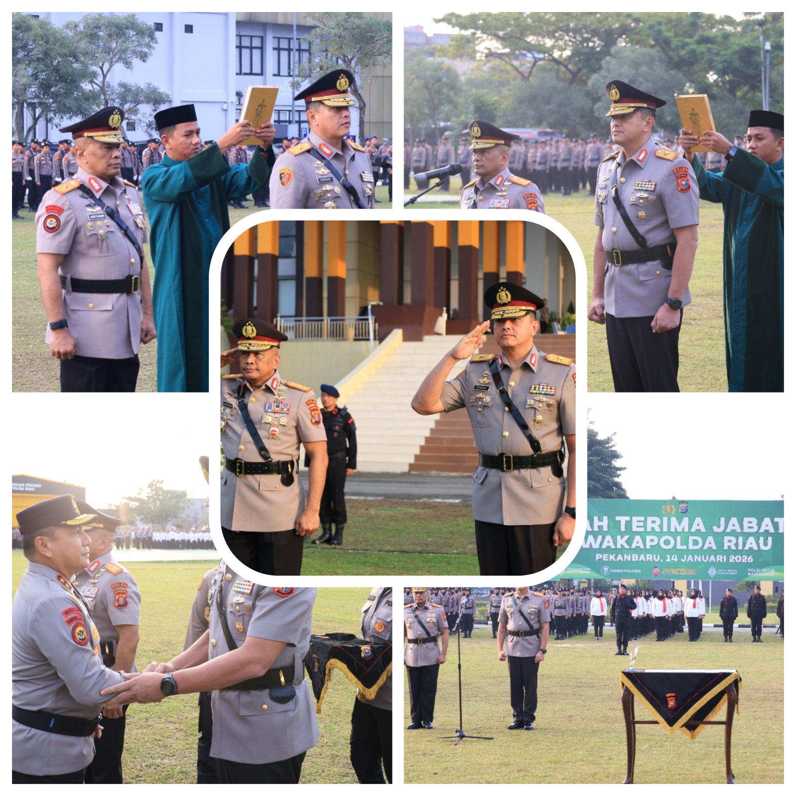 Upacara sertijab wakapolda ini digelar di halaman Mapolda Riau, dipimpin langsung oleh Kapolda Riau Irjen Pol Herry Heryawan, Rabu (14/1/2026) pagi. Kegiatan ini turut dihadiri pada pejabat utama (PJU) Polda Riau.