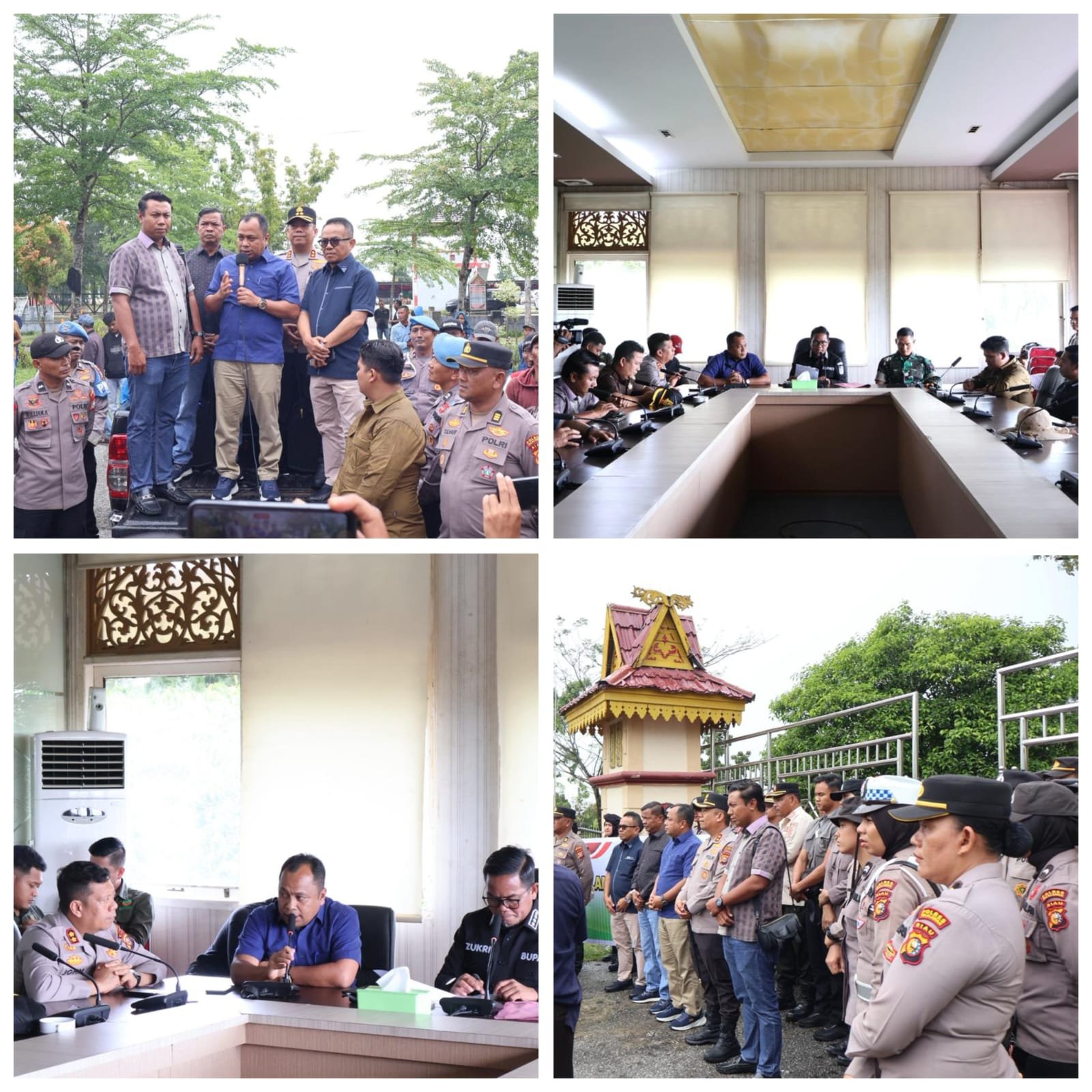 Pada hari Kamis, 04 Desember 2025, telah dilaksanakan pengamanan aksi unjuk rasa Aliansi Mahasiswa dan Masyarakat Pelalawan (AMMP) di Kantor DPRD Kab. Pelalawan. Kegiatan pengamanan ini dipimpin langsung oleh Kapolres Pelalawan, AKBP JOHN LOUIS LETEDARA, S.I.K, didampingi Wakapolres Pelalawan, KOMPOL ASEP RAHMAT, S.H., S.I.K., MM, Kabag Ops, AKP H. YULHAIRI, S.H., M.H, Kasat Intelkam Polres Pelalawan, IPTU IRMANSYAH, S.H, Kapolsek Pangkalan Kuras, AKP RINALDY PARLINDUNGAN, S.H, Dandim 0313/KPR, LETKOL CZI SATRIADY PRABOWO, S.I.P., (tautan tidak tersedia), Kepala Kejaksaan Negeri Pelalawan, SISWANTO AS, S.H., M.H, Wakil Ketua I DPRD Kabupaten Pelalawan, Sdr. BAHARUDIN, S.H., MH, Anggota DPRD Kab. Pelalawan, Sdr. ABDUL NASIB, SE, Sdr. SANIMAN, Sdr. EFRIZON, Sdr. H. ZAKRI, Sdr. WANDRI SAPUTRA SIMBOLON, Kordum AMMP, dan Sdr. DAVID JERRY SITINJAK, Korlap AMMP.